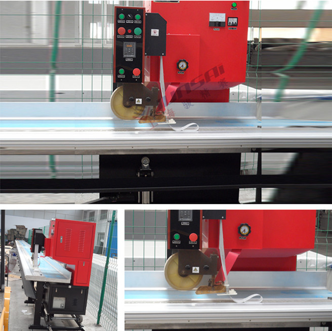 4. 機(jī)器的內(nèi)側(cè)設(shè)有相應(yīng)跨度的放料槽,放料槽的跨度和深度可根據(jù)焊接的產(chǎn)品大小選擇。以滿足不同大小面積的帆布熔接及接駁。