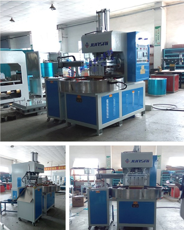 圓盤高周波機,全自動圓盤高周波機,配置超負(fù)荷自動跳脫安全開關(guān),在操作中,保持機器正常安全帶;